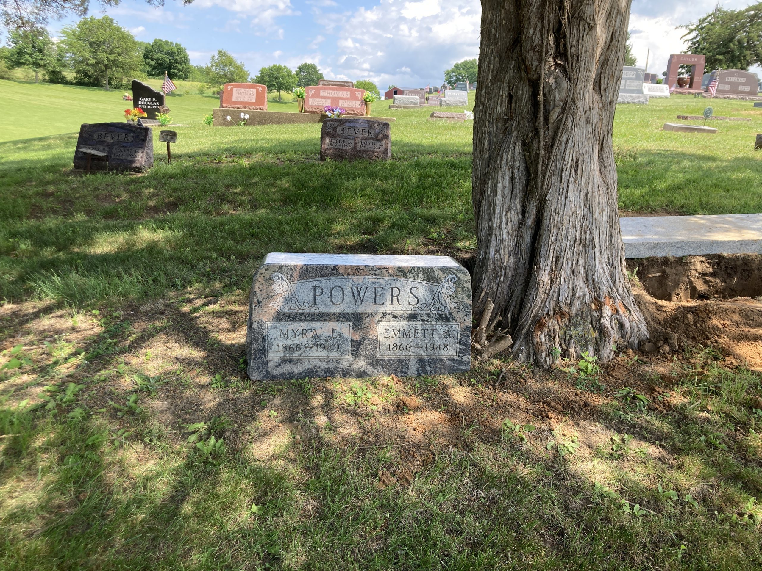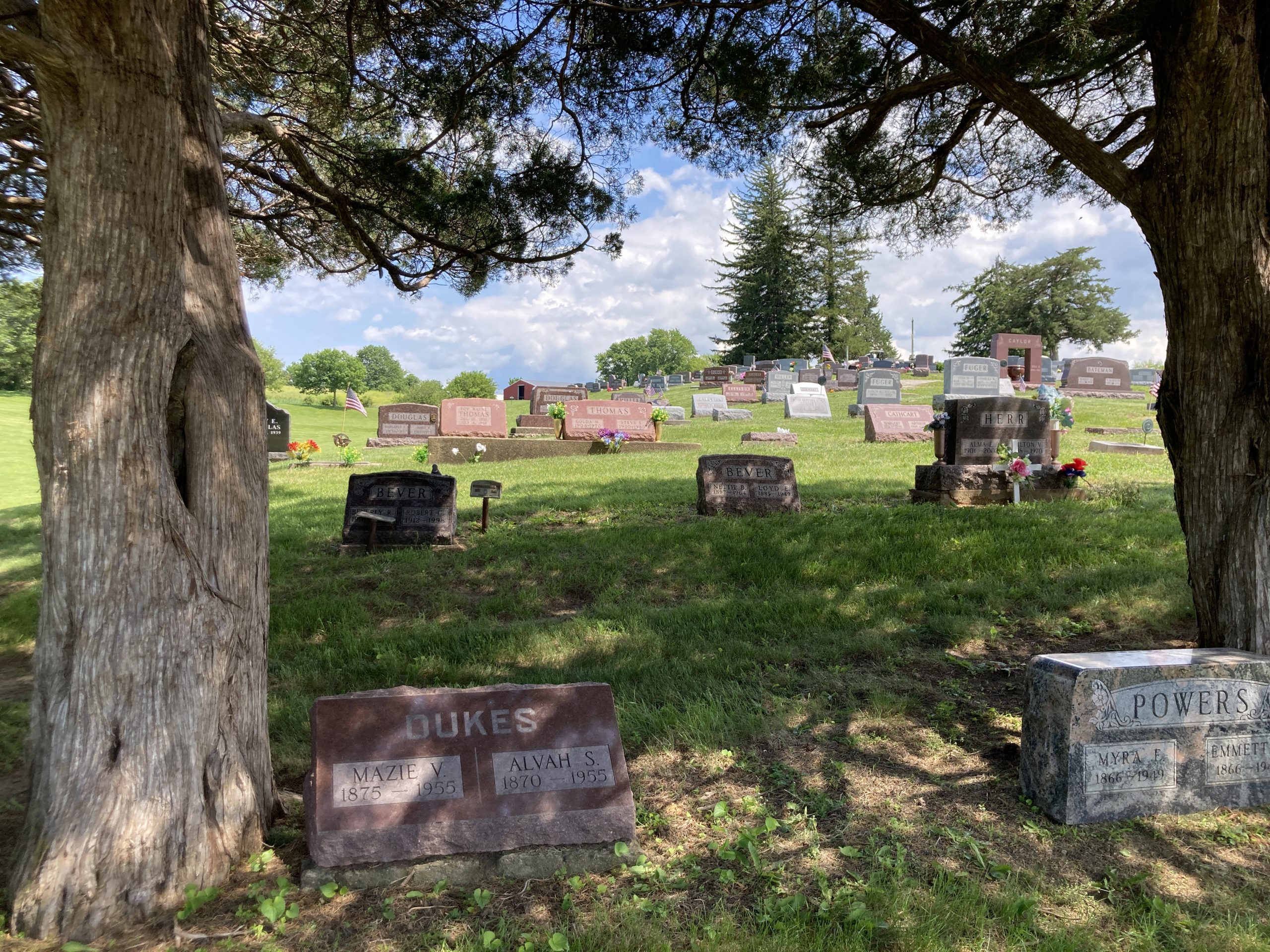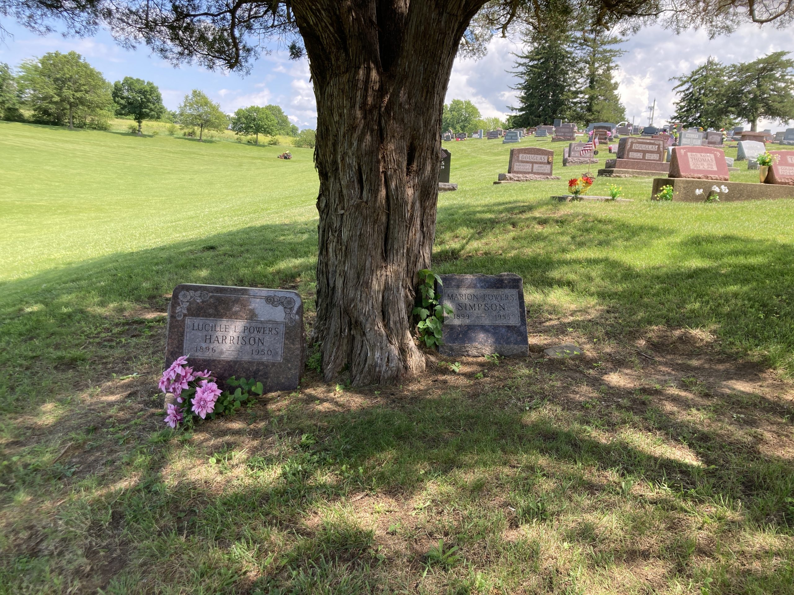 Samuel Jennings 1839-1918Oakland Cemetery EntranceAnna C. 1852-1922 & Samuel Jennings 1839-1918Left – Myra Jennings Powers 1866-1949 Emmet Almond Powers 1866-1948for context – these family gravesites lie between to old cedar trees, in a cemetery where there are very few trees.Left Marion Powers Simpson Right Her parents Emmet Almond Powers and Myra Jennings PowersGrandmother Clarice Powers Bagby’s sister Edna Powers Dukes and Harry Dukes – Oakland CemeteryGrandmother Clarice Powers Bagby’s sisters both died of cancer, married w/o children. Left Lucille Powers Harrison 1896-1950 Right Marion Powers Simpson 1899-1955View from Powers / Dukes Gravesites.